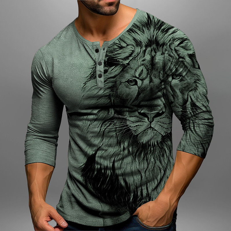 Men's Graphic Lion Henley Shirt Long Sleeve 3D Print Fashion Daily Casual Casual Holiday Going out Spring Fall Blue Brown Green Gray Henley Henley T-Shirt