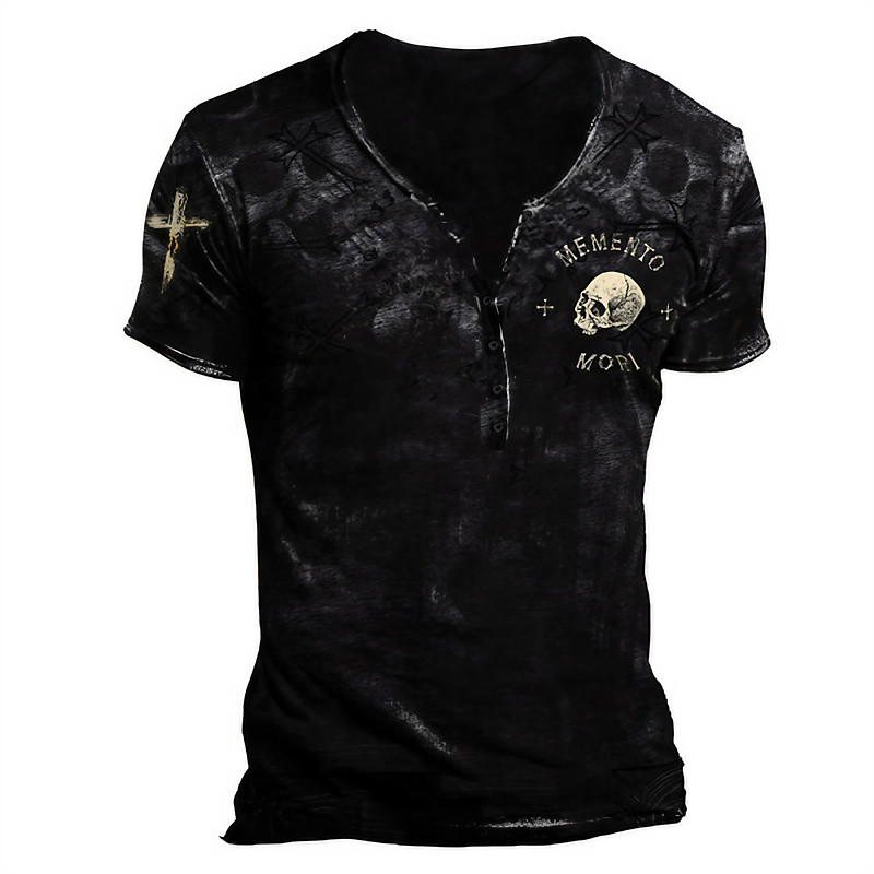 Men's T shirt Tee Henley Shirt Skull Graphic Prints Henley Black Army Green Brown Khaki 3D Print Outdoor Casual Short Sleeve Button-Down Print Clothing Apparel Stylish Lightweight Vintage Breathable