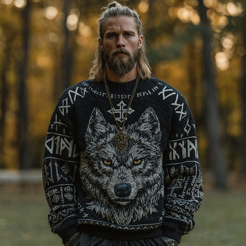 Men's Animal Wolf Pullover Sweater Jumper Knitwear Crewneck Retro Vintage Casual Vacation Street Daily 3D Print Knitting Keep Warm Long Sleeve Spring Fall Winter Black Blue Green