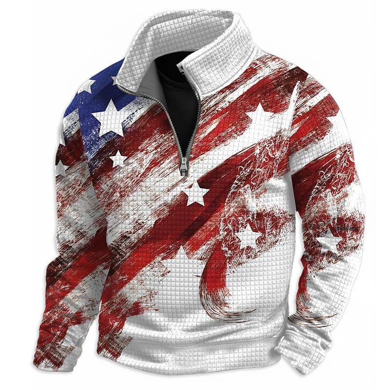 US America 250 Year Anniversary Men's American US Flag Sweatshirt Fashion Daily Classic Casual Stand Collar Quarter Zip Outdoor Home Office Work White White 2 Zip Up Fall Winter Designer S M L