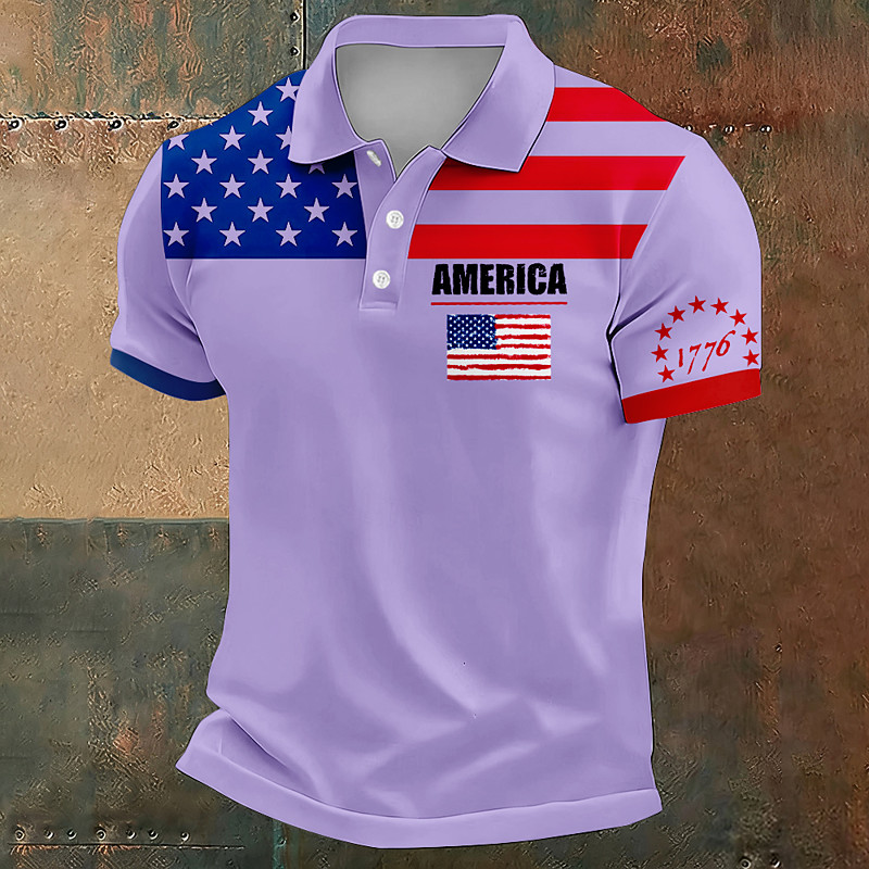 American Independence Day Men's American Flag Polo Short Sleeve Polo Shirts Lapel Casual Athleisure Daily Wear Festival Wear 3D Print Buttons Summer Blue White Purple