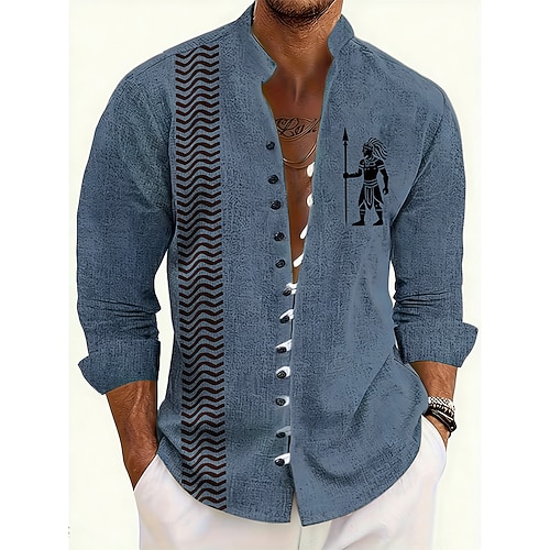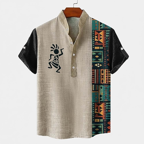 Per uomo Motivo Geometrico Tribale Etnico Camicia Camicia button-down Manica Corta Vintage Retrò Ferie Casual Quotidiano Estate Primavera Colletto Mao Colletto Henley Stampa 3D Camicia tipo lino