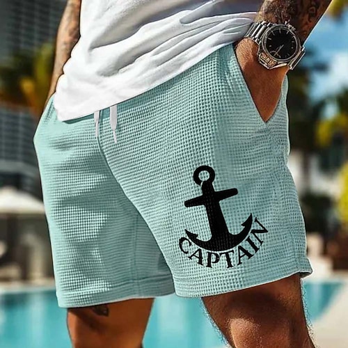 Herren Druck Anker Waffel-Shorts Sweat-Shorts Freizeitshorts Mittlere Taille Modisch lässig Urlaub Joggen Trainieren Strukturiert Elastischer Kordelzug in der Taille Shorts mit Taschen Designer