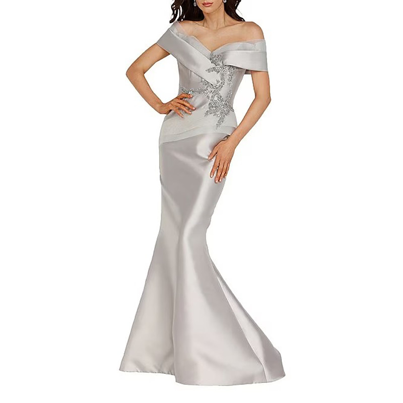 Sheath Column Floor Length Beaded Eembroidered Formal Dresses Mother of the Bride Dress Ball Gown with Cape Evening Gown Formal Dress Elegant Vintage Glittering Long Sleeve One Shoulder Wedding Formal