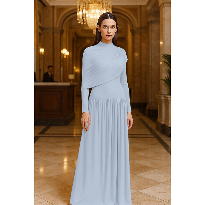 A-Line Floor Length Prom Dresses Evening Gown Ball Gown Formal Dress Elegant Vintage Long Sleeve Crew Neck Wedding Formal Stretch Crepe with Pleats