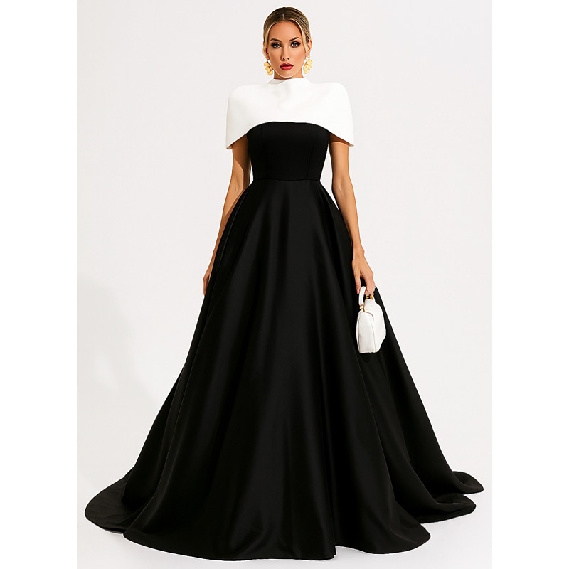 A-Line Floor Length Evening Gown Ball Gown Elegant Short Sleeve Off Shoulder Wedding Formal Pocket Satin Nylon with Pocket