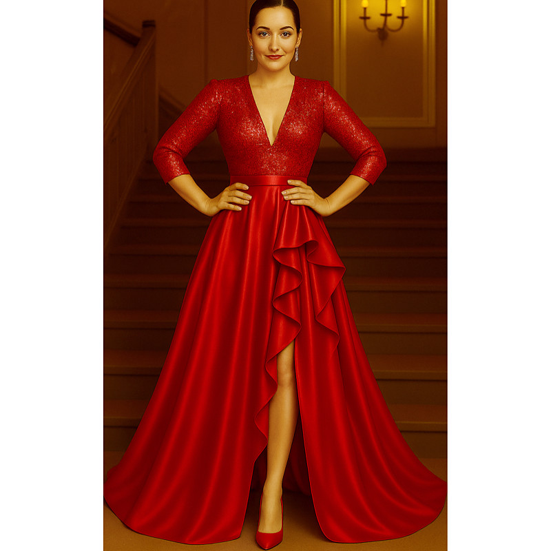 A-Line Floor Length Evening Gown Ball Gown Formal Dress Elegant High Split Silky Long Sleeve V Neck Wedding Formal Pocket Satin Jacquard with Pocket