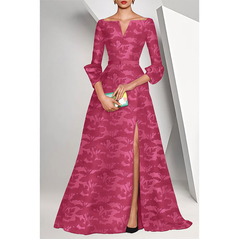A-Line Floor Length Formal Dresses Cocktail Dresses Evening Gown Ball Gown Formal Dress Elegant 3/4 Length Sleeve V Neck Garden Party Wedding Jacquard with Pocket