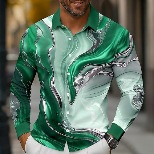 Per uomo Geometrico Marmo Arte liquida astratta Camicia Camicia con Bottoni Manica Lunga Moda Casual All'aperto Abbigliamento Quotidiano Primavera Autunno Collo ripiegato Stampa 3D camicie con