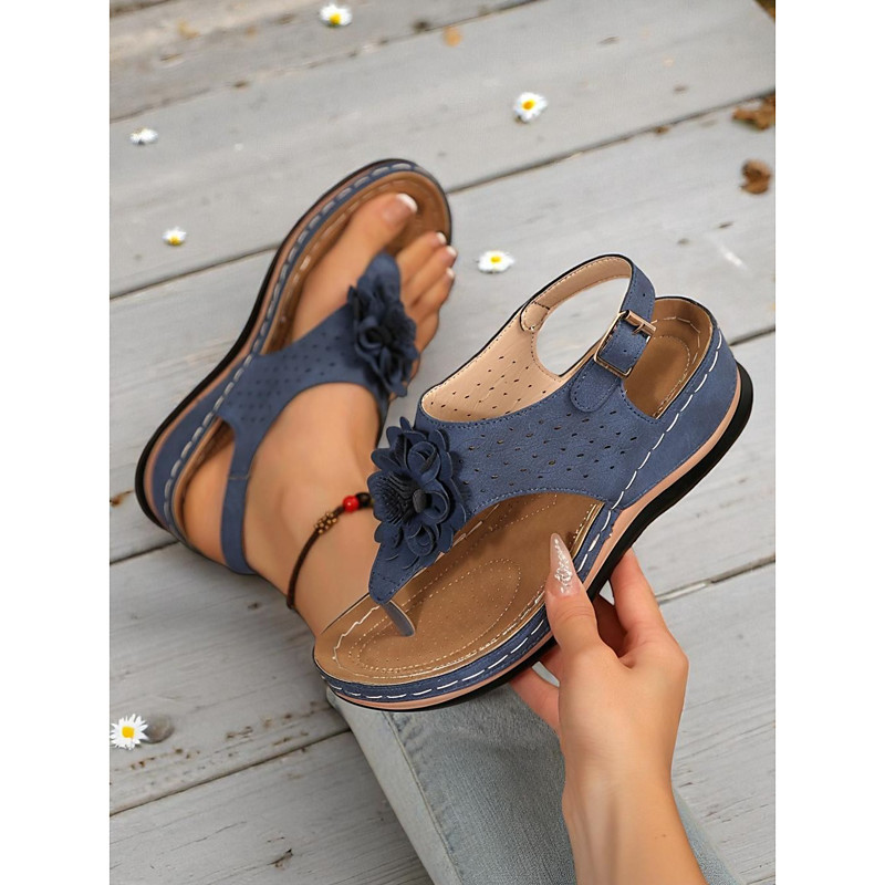 Women's Floral Embellished Comfort Sandals – Soft Sole Casual T-Strap Sandals for Ladies, Great for Garden Walks, Picnics and Daily Errands