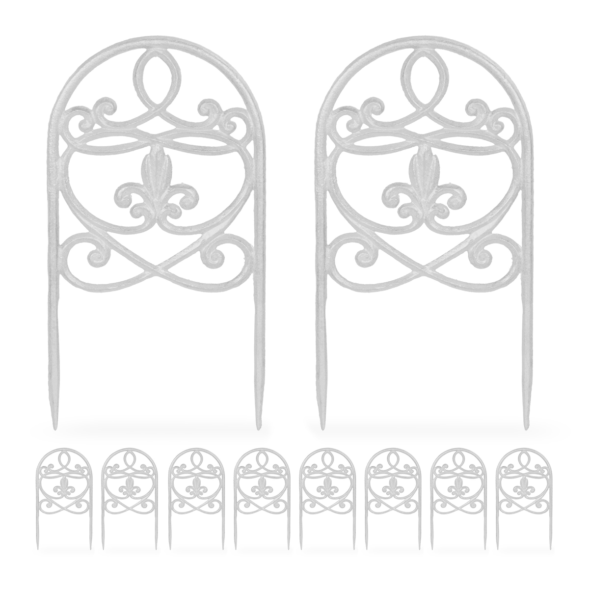 Relaxdays Beetzaun, 10er Set, Gusseisen, HxB: 32,5 x 17,5 cm, Vintage Design, Beetumrandung zum Stecken, Zierzaun, weiß