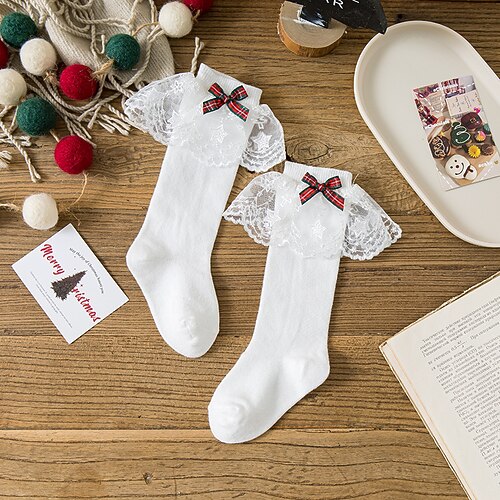 Kinder Mädchen Weihnachten Weihnachtsgeschenk Socken Weiß Rosa Rote Einfarbig Spitzenbesatz Herbst Winter Alltagskleidung