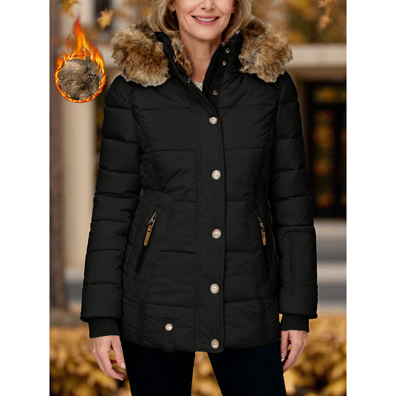 Women's Puffer Jacket Daily Winter Long Coat Fashion Streetwear Jacket Long Sleeve Fur Trim Patchwork Black Pink Navy Blue