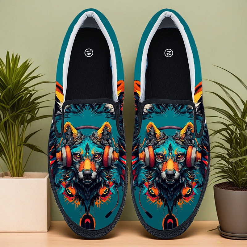 Men's Mardi Gras Mystical Animal Print Slip-On Shoes – Whimsical Design for Carnival, Festivals and Trendy Street Style