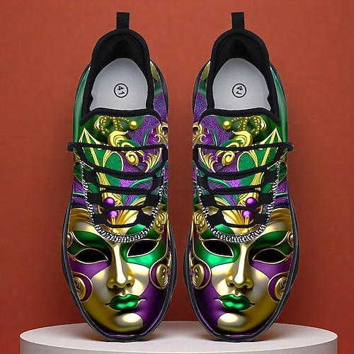 Männer Mardi Gras Lebendige Karnevals Sneaker mit Maske und Konfetti-Design – Helle Bequeme Schuhe für Paraden Partys und Festivals