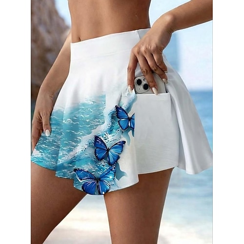 Per donna Gonna da vacanza Gonna da tennis Elegante Moda Hawaiano Abbigliamento da Spiaggia Mini Vita Alta Gonne Floreale Grafico Elasticizzato Quotidiano Verde / bianco Estate 95% poliestere 5