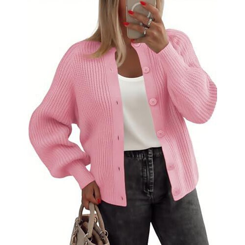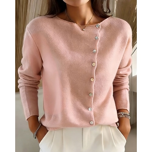 Per donna Felpa Cardigan Streetwear Casual Colore Puro Girocollo Bottoni Lavorato a maglia Manica Lunga Top Regolari Maglia Ferie Uscire Weekend Nero Rosa Autunno Inverno