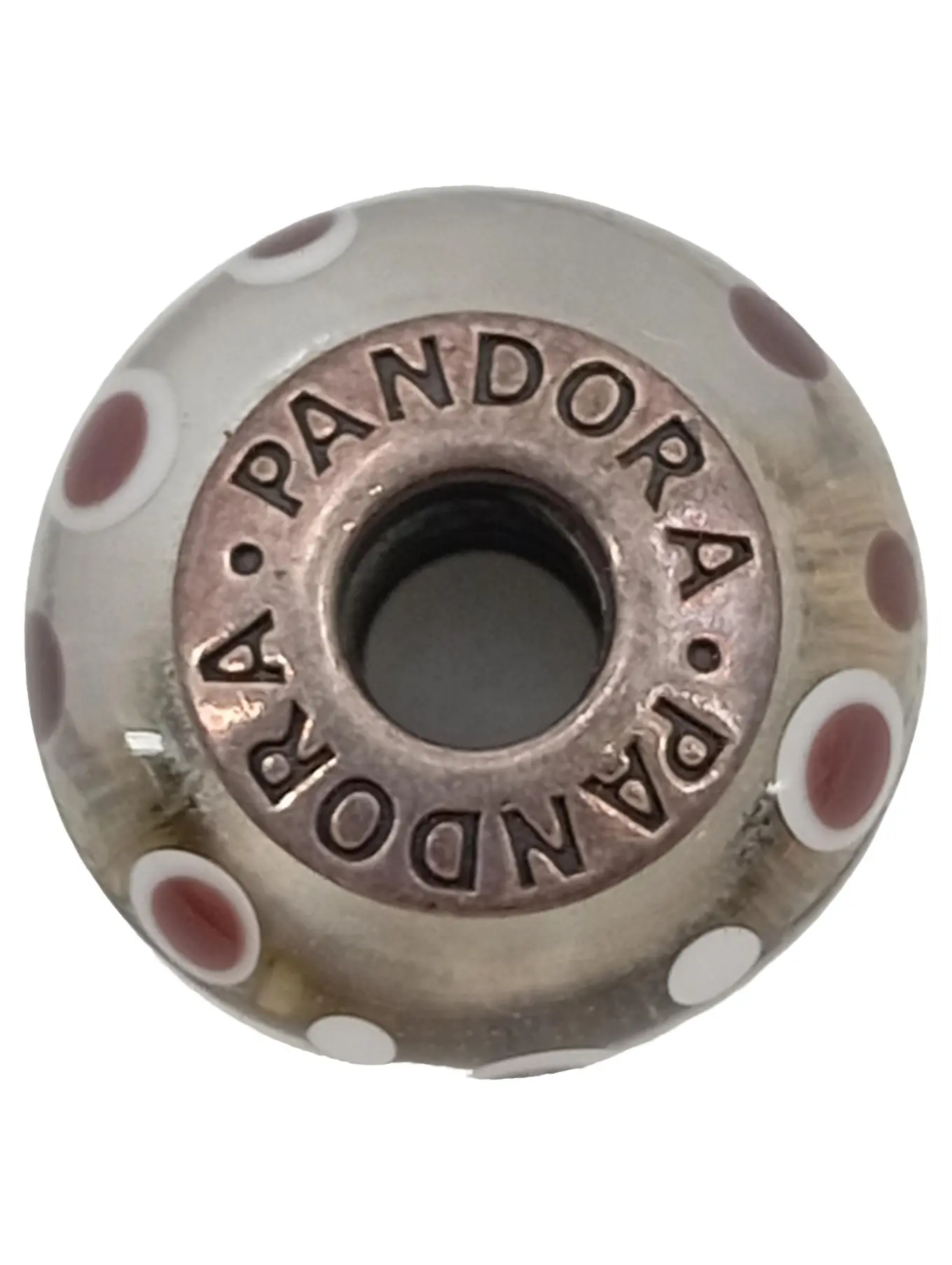 PANDORA Charm Anhänger, 7 mm, grau/weiß/rot, Markenlogo