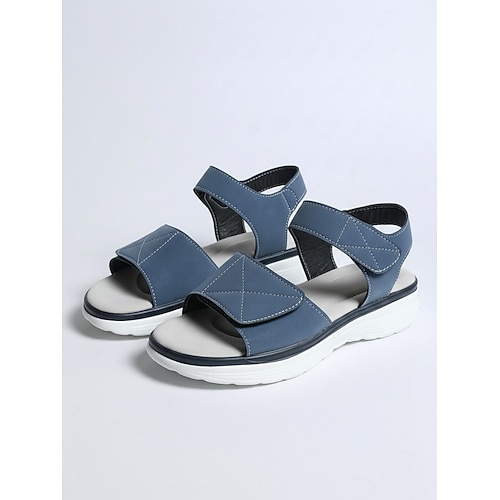 Sandali sportivi blu da donna con cinturini regolabili in velcro – sandali comodi e leggeri, scarpe da passeggio ammortizzate per viaggi, attività all'aperto, spiaggia abbigliamento quotidiano