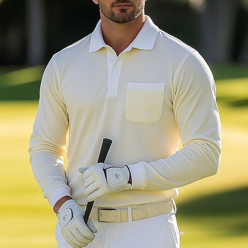 Per uomo Polo Polo da Golf Affari Casuale Bavero Classico Manica Lunga Moda Essenziale Tinta unica Semplice Tasca Blocco di colore Autunno Inverno Tutte le stagioni Vestibilità regolare Beige Polo