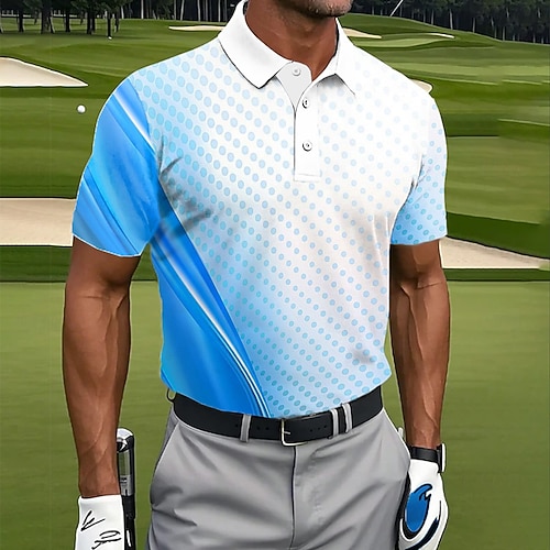 Herren Geometrisch Polo Golf Poloshirts Kurzarm Polo-Shirts Revers Lässig Athleisure 3D-Druck Knöpfe Sommer Blau Rote Himmelblau