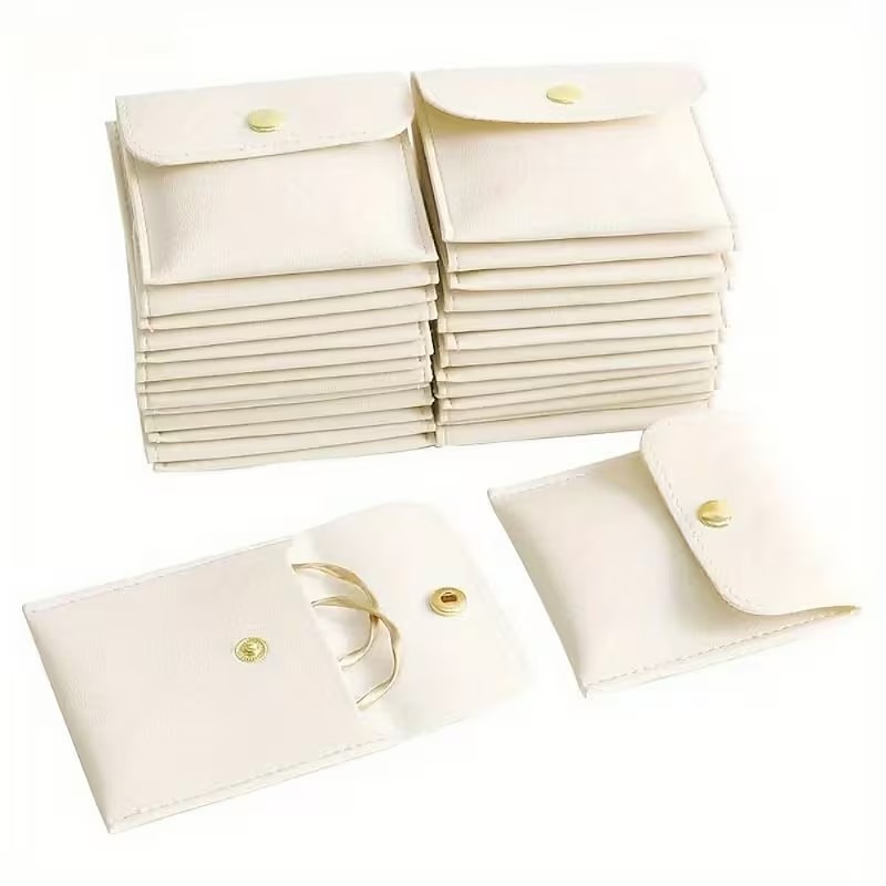 10PCS PU Leather Jewelry Storage Bags with Snap Design 3.15 x 3.15 inches suitable for storing rings necklaces and various colored accessories