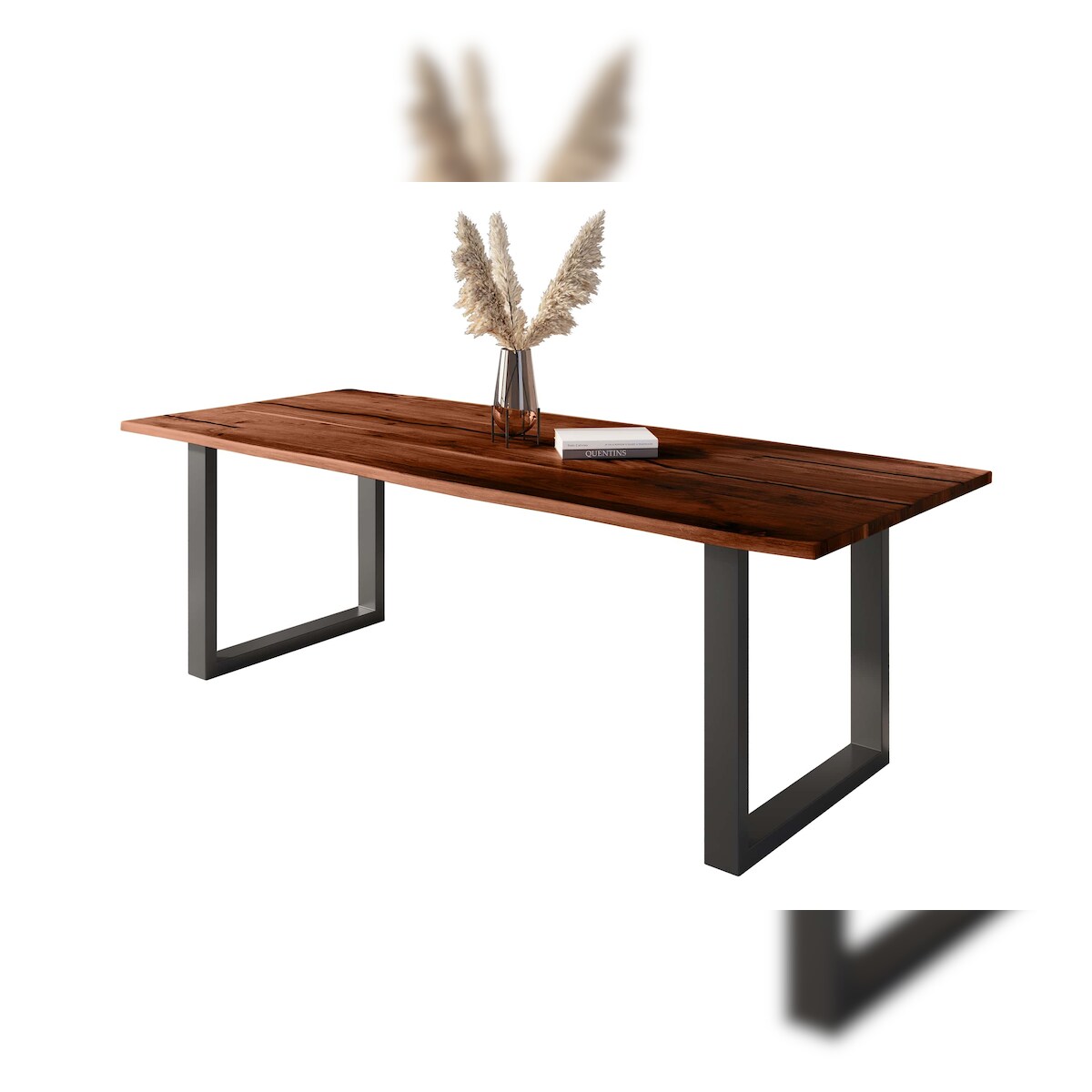 Möbelliebling Baumkantentisch Akazie mit schwarzen Resin-Adern nussbaumfarben 300 x 100 cm U-Gestell schwarz POLLY
