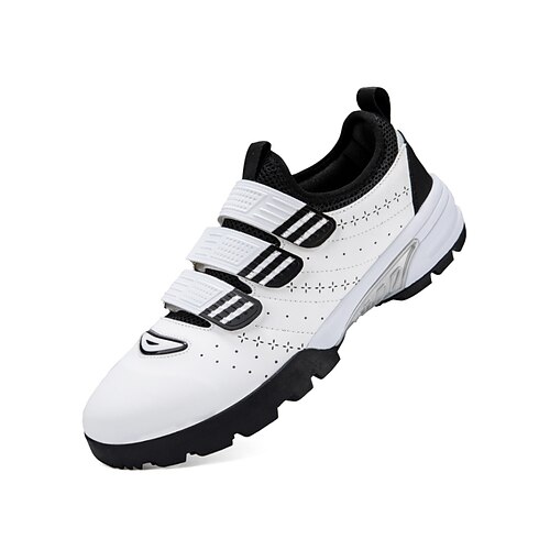 scarpe da golf da uomo, in similpelle bianca con strisce blu, traspiranti e leggere, suola antiscivolo, perfette per campi da golf, sport all'aria aperta e stile di vita attivo