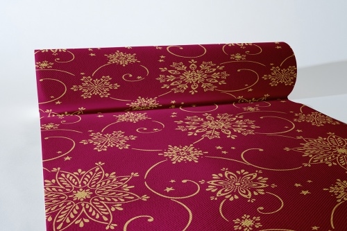 MANK Tischläufer Tissue Cristal in Bordeaux, 40 cm x 24 m , 1 Stück - Weihnachten Tischtuch