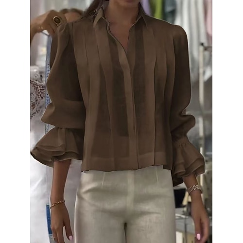 Per donna Camicia Blusa Tinta unica Vintage Elegante Classico Manica Lunga Girocollo Top Regolari Quotidiano Nero Rosso Blu marino Blu Cachi Primavera Autunno