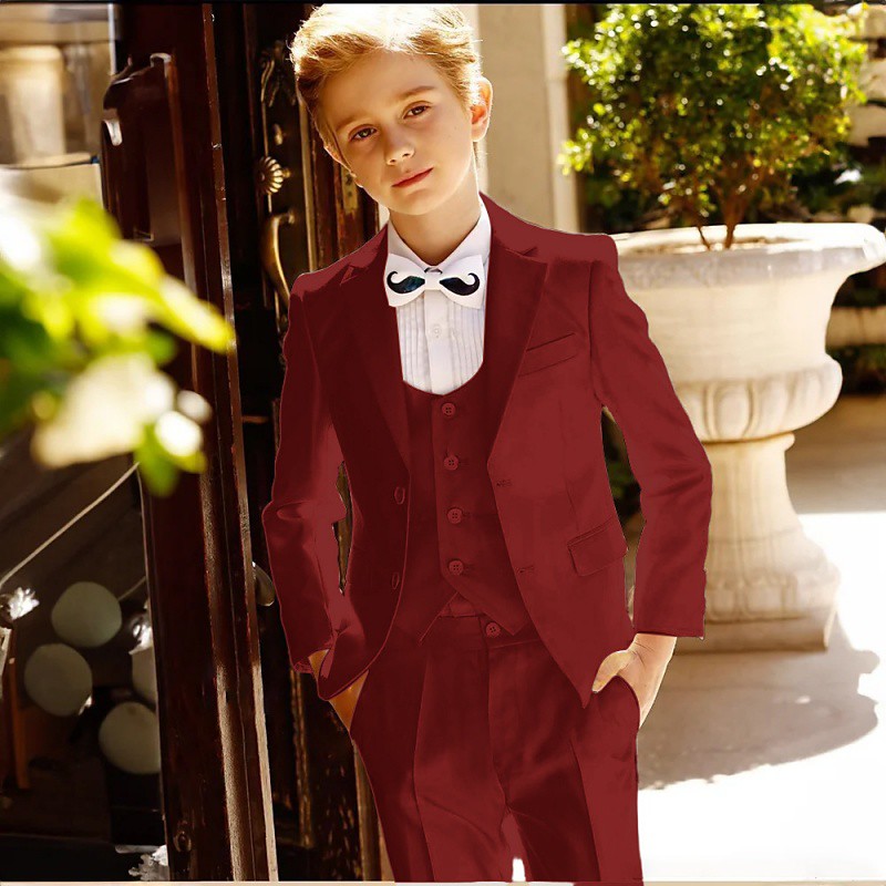 3 Pieces Ring Bearer Suit Boys' Kids Suit Blazer Vest Pants Boy's Formal Suit Casual Outdoor Party Fashion Cool Basic Solid Color Pocket Buttons Blue Black White Polyester