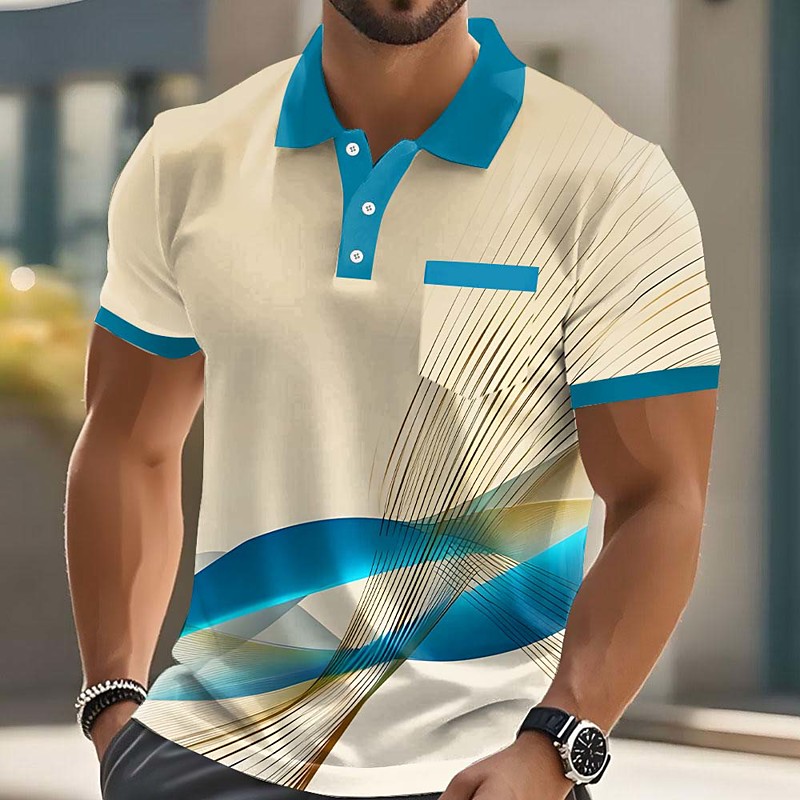 Men's Geometic Line Polo Short Sleeve Polo Shirts Collared Shirts Casual Outdoor Athleisure Daily Wear 3D Print Buttons Summer Blue Red Purple