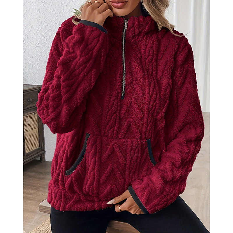Women's Sweatshirts Zip Up Sweatshirts Plain Streetwear Casual Comfy Long Sleeve High Neck Regular Tops Street Holiday Going out Half Zipper Quarter Zipper Pocket Quarter Zip White Pink Wine Blue