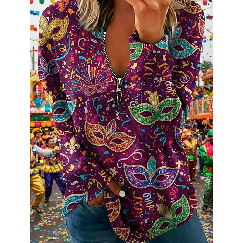 Women's Pullover Sweatshirt Graphic Animal Casual Long Sleeve Half Zip Regular Tops Casual Dailywear Holiday Zipper Blue Pink Purple Green Fall