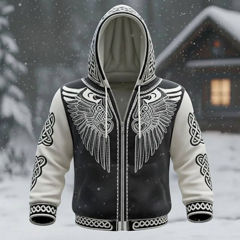 Men's Optical Illusion Wings Celtics Hoodie Jacket Sweatshirt Viking 3D Fantasy All Over Print Long Sleeve Zip Streetwear Vacation Going out Black White Zipper Fall Winter Designer S M L XL XXL XXXL