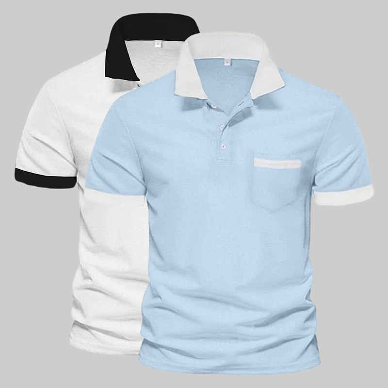 Men's Polo Shirts Golf Shirt Business Casual Lapel Short Sleeve Color Block Pocket 2 Piece Summer All Seasons Regular Fit Blue and White Gray / Red Blue Gray Blue Navy Navy white WhiteBlack