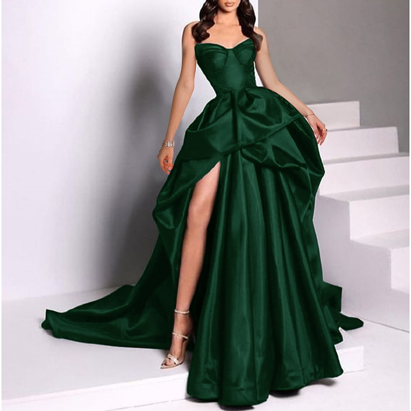 A-Line Court Train Prom Dresses Evening Gown Ball Gown Formal Dress Vintage Gothic Black Sleeveless Strapless Wedding Halloween Satin with Slit Pure Color