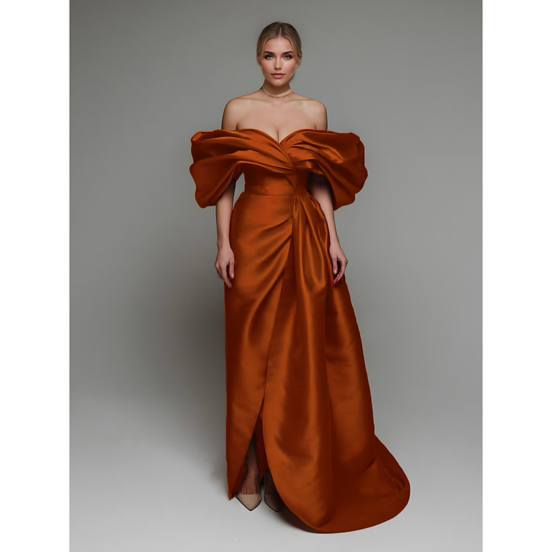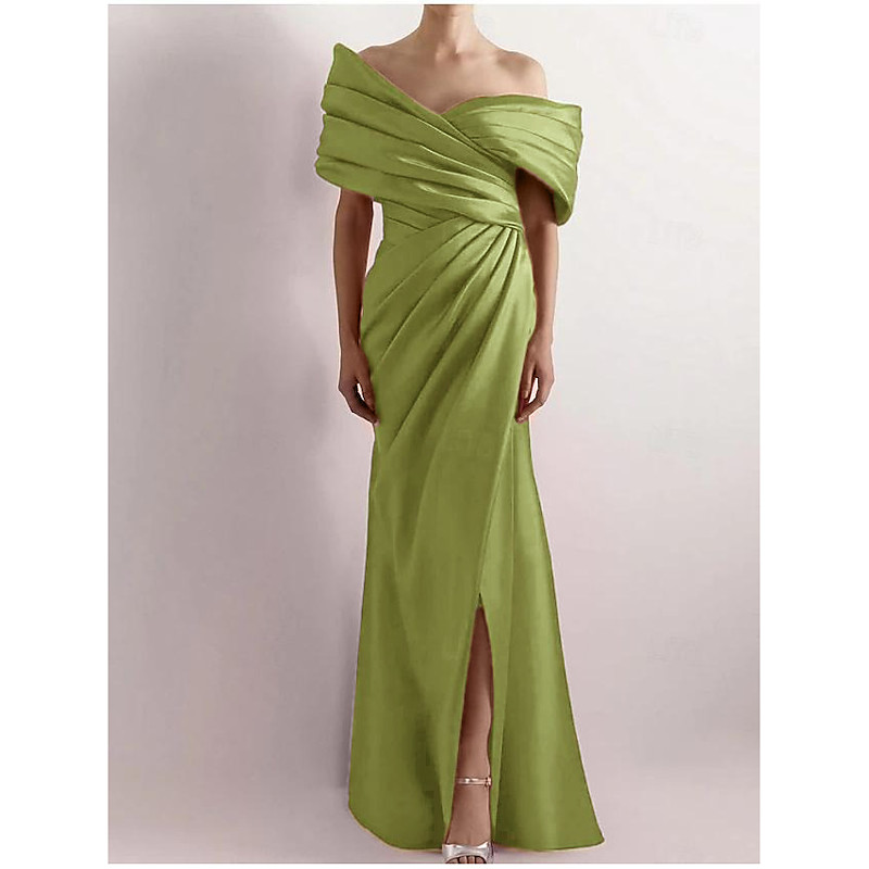 Sheath Column Floor Length Formal Dresses Evening Gown Prom Dresses Evening Gown Ball Gown Formal Dress Elegant Celebrity Style Short Sleeve Off Shoulder Wedding Formal with Ruched Slit Strappy