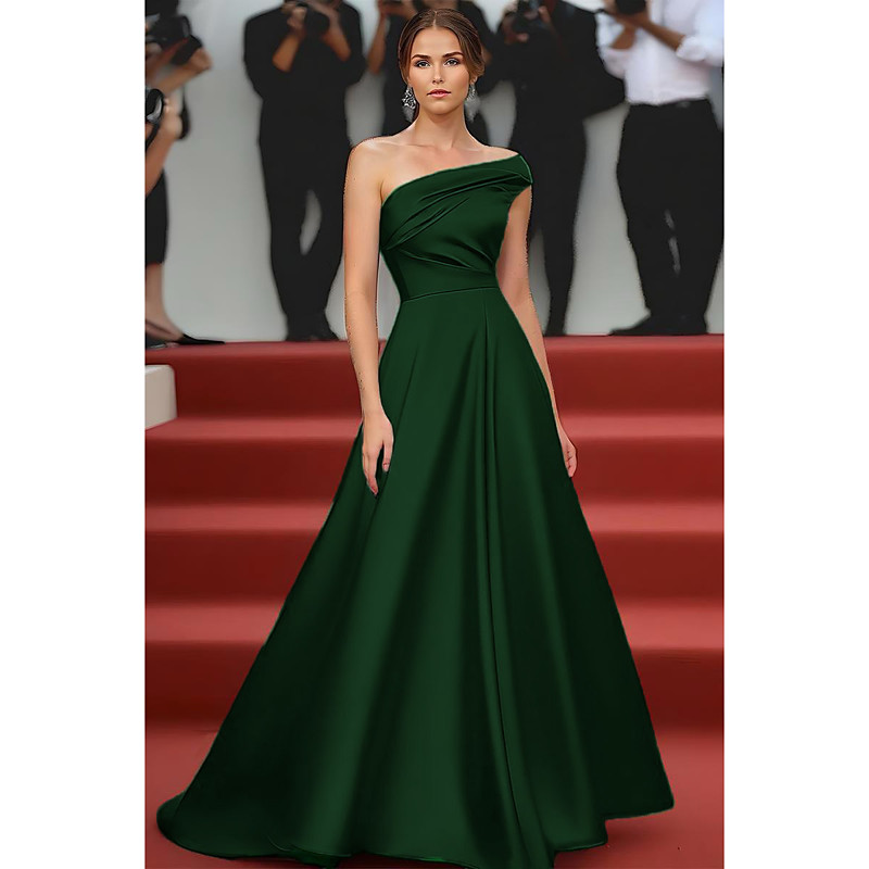 A-Line Floor Length Prom Dresses Evening Gown Ball Gown Formal Dress Elegant Glittering Celebrity Style Sleeveless Off Shoulder Garden Party Wedding Satin with Pleats Ruched