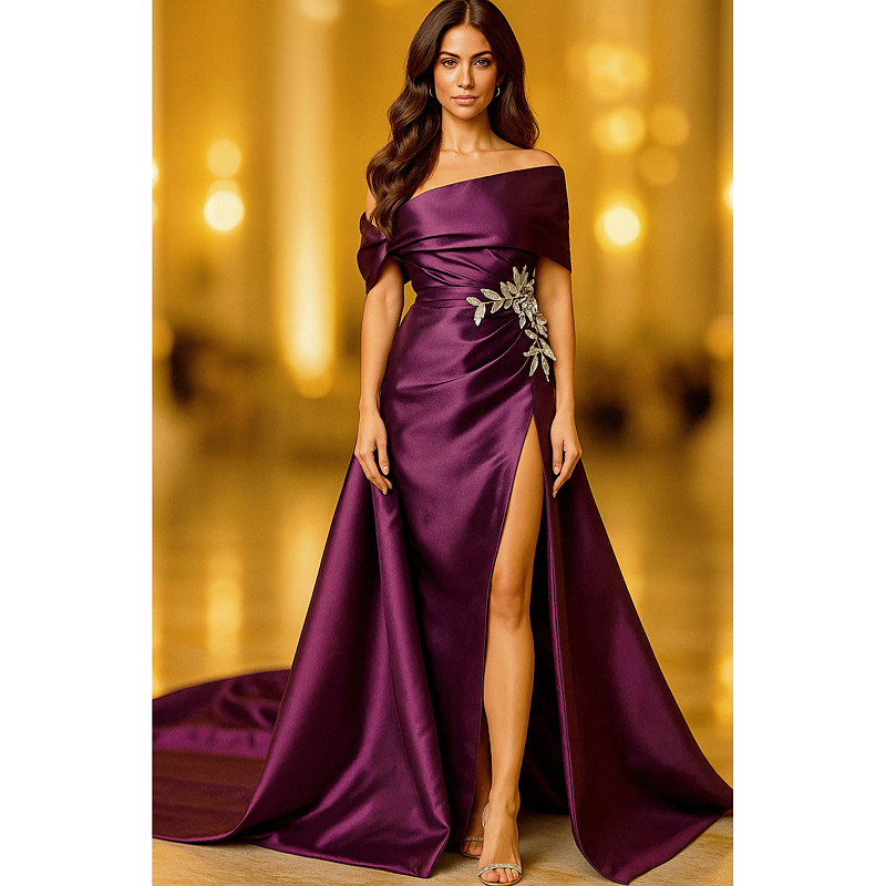 Mermaid Trumpet Court Train Evening Gown Ball Gown with Overskirt Formal Dress Elegant Sleeveless Off Shoulder Garden Party Wedding Satin Stretch Crepe with Ruched Crystals Overskirt