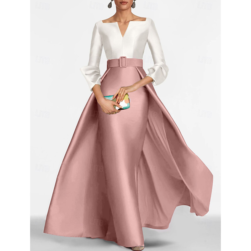 Sheath Column Floor Length Evening Gown Ball Gown with Overskirt Formal Dress Elegant Color Block Silky 3/4 Length Sleeve V Neck Christmas Formal Belt / Sash Satin with Slit