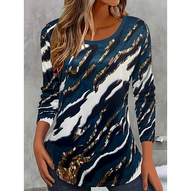 Women's T Shirt Graphic Striped Abstract Vintage Stylish Classic Long Sleeve Crew Neck Round Neck Regular Tops Daily Print Navy Blue Spring Fall Winter
