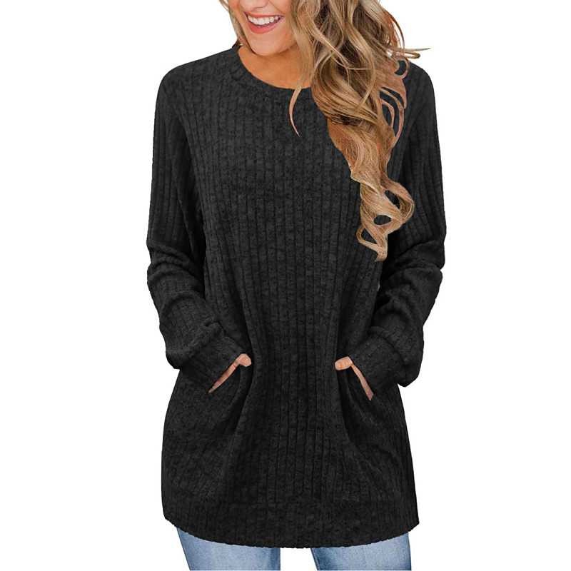 Women's Blouse Solid Color Stylish Casual Long Sleeve Crew Neck Long Tops Daily Pocket Black Blue Purple Brown Green Spring Fall Winter