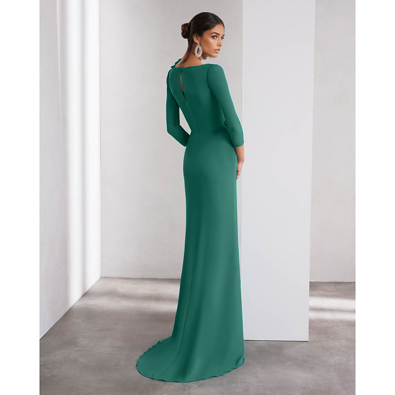 A-Line Floor Length Prom Dresses Evening Gown Ball Gown Formal Dress Elegant Vintage High Split Long Sleeve Crew Neck Wedding Formal Detachable Stretch Crepe with Shouder Flower