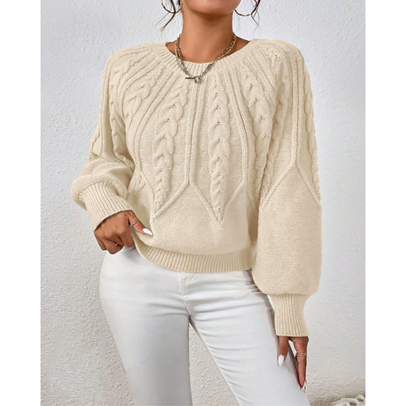 Women's Pullover Casual Solid Color Chunky Crew Neck Knitted Long Sleeve Regular Tops Knit Daily Holiday Going out Red Brown Blue Fall Winter