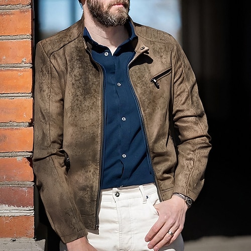 Per uomo Giacca in Ecopelle Giacca da Biker Giacca da Moto Vacanza Quotidiano Antivento Tasca Primavera Autunno Semplice Moda Classico Collo alla coreana Regolare Nero Marrone Giacca
