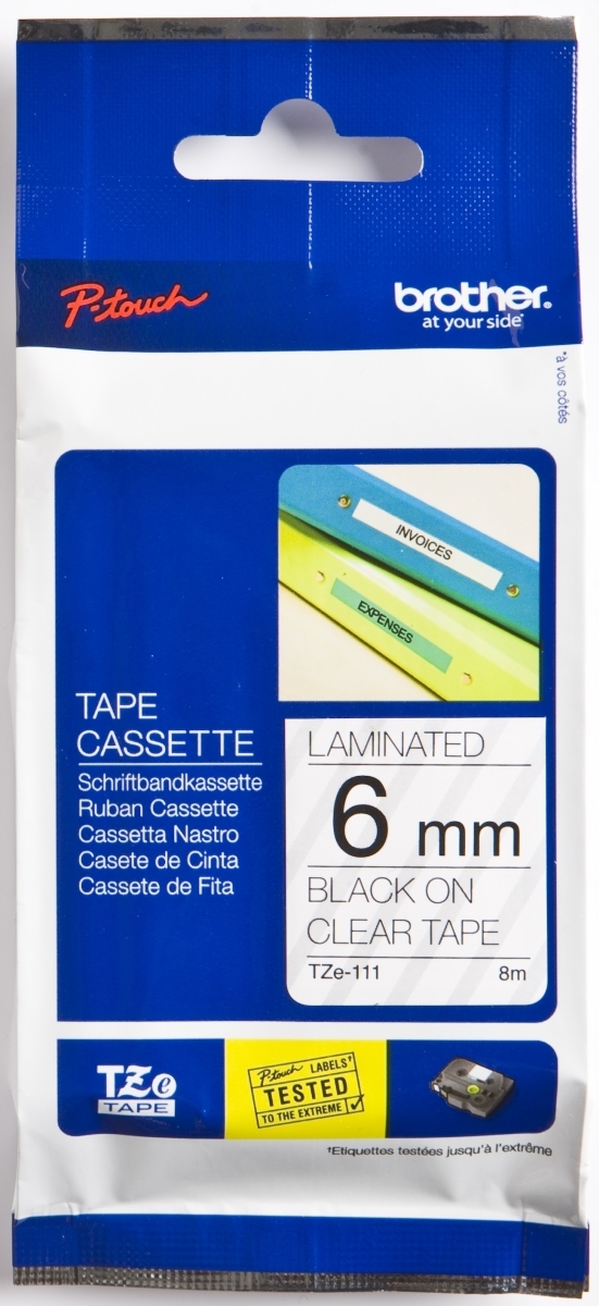 Brother Schriftband TZE-111 6mm schwarz/transparent Packung mit 25 Stück