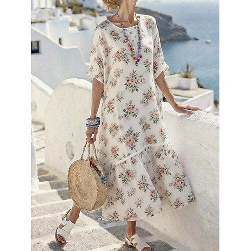 Per donna Abito lungo maxi Abito a Tubino Vestito Casual Moda Moderno Quotidiano Vacanza Uscire Vestibilità comoda Floreale Mezza Manica Girocollo Blu Rosso Verde scuro Viola Estate Primavera Autunno