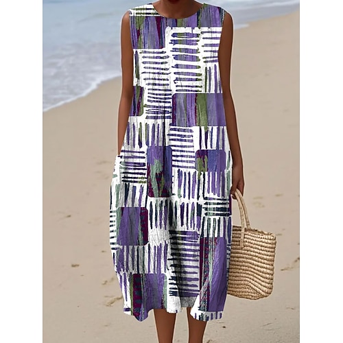 Per donna Abito Midi Vestito Estivo Abito a Tubino Abito a trapezio Vacanza Casual Boho Spiaggia Uscire Vestibilità comoda Grafico Geometrico Senza Maniche Girocollo Viola Verde Estate Primavera