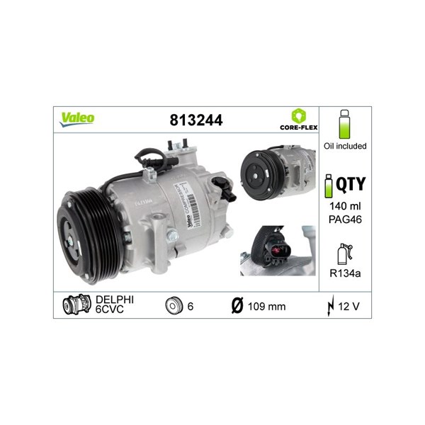 Kompressori, ilmastointilaite 12V Valeo 813244 - chevrolet, opel, vauxhall - OE 13346492, 13361843, 13396664
